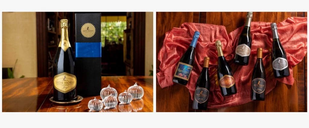 Nor, Pinot Noirs. I tend to always talk about bubbly, but you don’t want to forget our Pinots. We just switched to the 2019 vintage in the Tasting Room and online. We now produce six distinct Pinots. The range of flavors is amazing and just looking at them in the glass – the Deer Gate, for example is clear ruby and the Winery Block, from the vineyard block immediately adjacent, is deeper and more plush, like velvet.