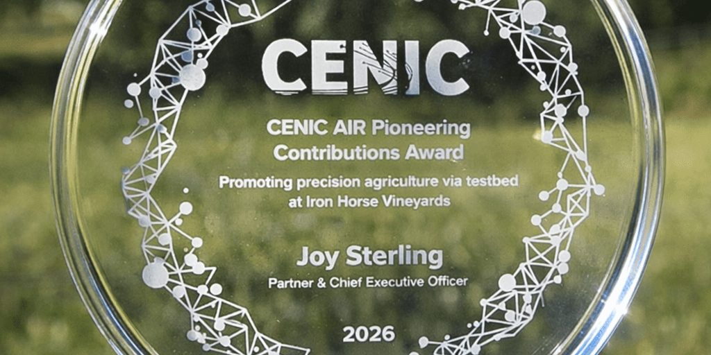 When asked whether we are innovators, I am quick to raise my hand for Iron Horse. We’re at the forefront of innovation in the vineyard, and honored to receive the CENIC AIR (AI Resources) Pioneering Contributions Award in recognition of the precision agriculture testbed we are building at Iron Horse.